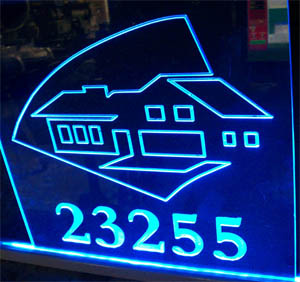 Edge lit address and estate signs or home signs can be seen both night